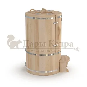 Круглая фитобочка из кедра - это мини парная, которую можно использовать не только в спа-салонах, но и дома. Такая модель наиболее компактна и мобильна. Толщина стенок составляет 25 мм. Фитобочка оборудована откидными створками, дверцей и отверстием для головы. Во время парения человек сидит внутри кедровой бочки, а голова находится снаружи. Благодаря этому исключается возможность перегрева. Подлокотники из кедра, встроенные ручки на створках и двери делают эксплуатацию более удобной.