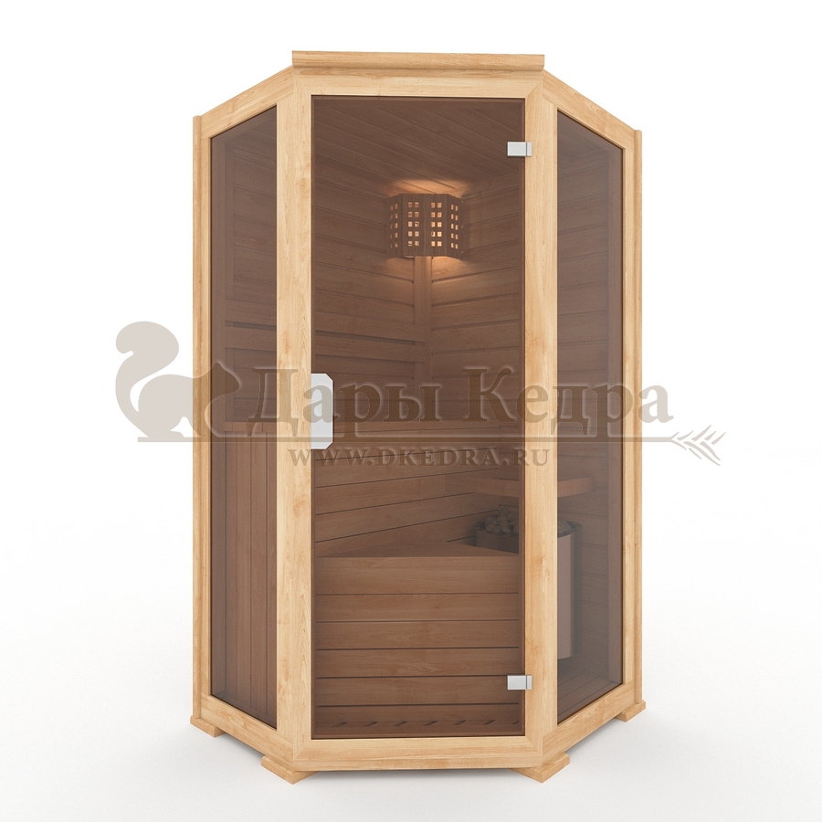 Финская сауна с электрокаменкой представляет собой компактную парную кабину, изготовленную из целебной древесины сибирского кедра. Финская