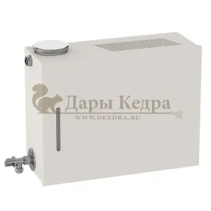 Парогенератор накопительного типа, с объемом бака 6,5 литров, отлично подойдёт для коммерческого и домашнего применения - в увеличенных кедровых бочках, душевых, для увлажнения бань и саун. Рассчитан на объем парной до 4 кубов.