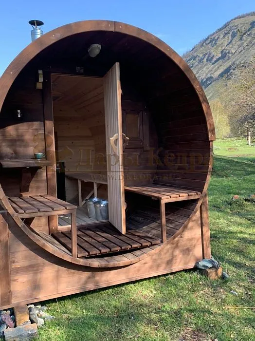 При выборе бани под ключ, прежде всего, нужно отталкиваться от личных желаний. Какое строение вы хотите видеть у себя на участке: классического вида или более оригинальной и нестандартной бочкообразной формы. Благодаря закругленной форме парилка быстро нагревается и долго сохраняет тепло. А отсутствие углов способствует правильному распределению пара. Незначительным минусом такой парной является небольшая ширина - максимальный размер 2,3 метра.