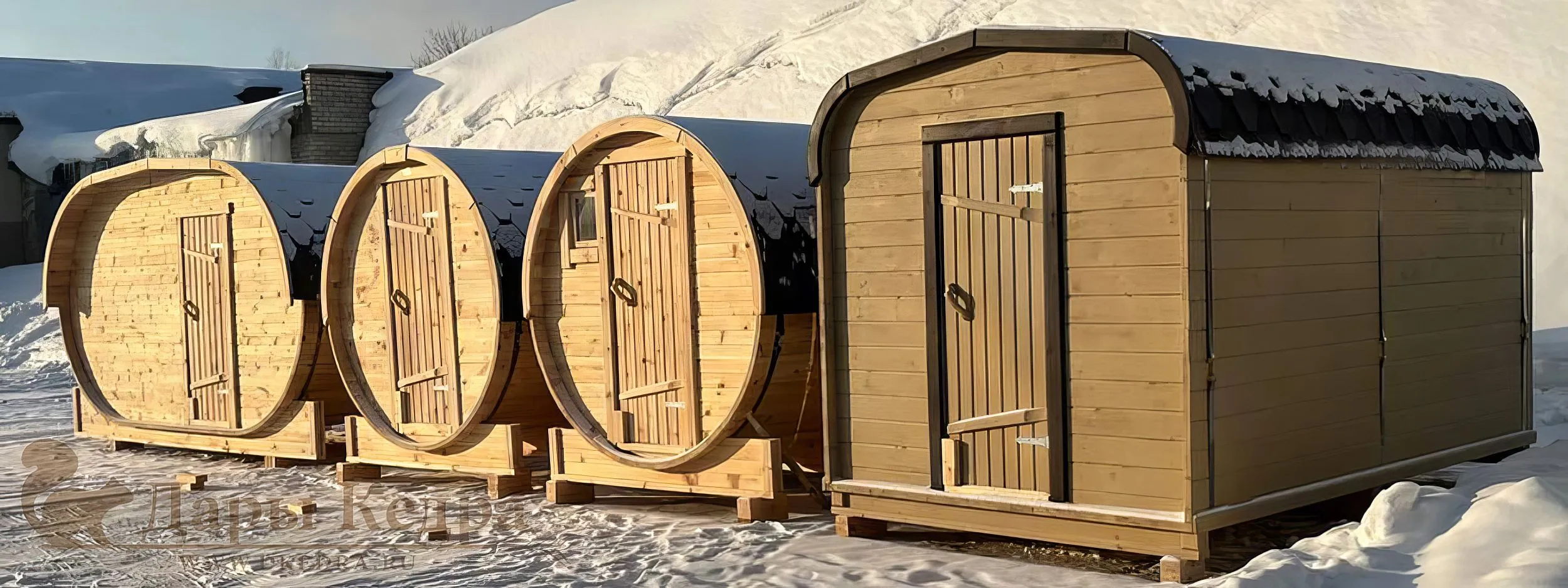 Мобильные парные бывают бочкообразными и каркасно-щитовыми. Причем, бочки могут быть квадратной, круглой, овальной формы или в виде буханки с закругленной крышей и прямым полом. С добавлением козырька или веранды, а также бокового входа, получаем уже более интересные внешне банные конструкции. Каркасно-щитовые конструкции представляют собой классические парные в привычном для русского человека исполнении, где есть парная, моечная, раздевалка.