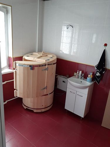 Богатырскую бочку выбрали с мужем по совету менеджером, т.к. супруг тучный и высокий. Ему там вполне комфортно! Спасибо Дарам Кедра за такую красоту!